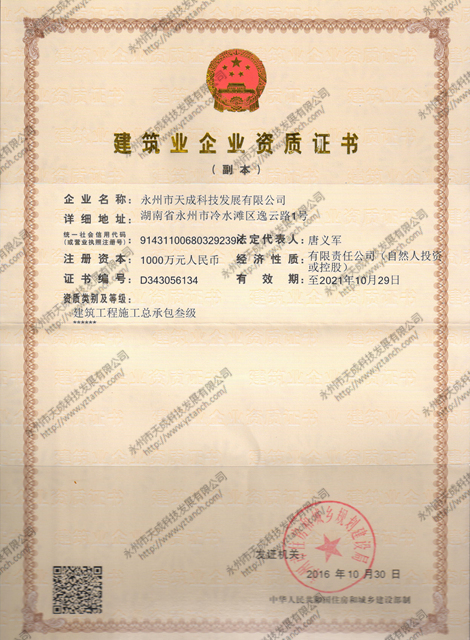 建筑工程施工总承包叁级资质证书