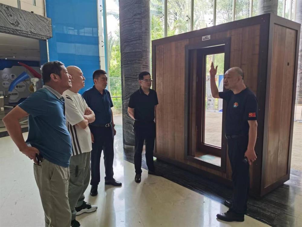 同时还参观了采用新型材料建造的安全屋-磐舍,它具有极高的强度和抗冲击性能,能够对处在其内的人或物提供有效的防护和保护;磐舍内置通讯定位功能,紧急状态下可随时保持与外界的联系。同时该材料还可以用于制作安全门、防爆墙和其他防护装置,以满足各种不同情景之下的安全需求。